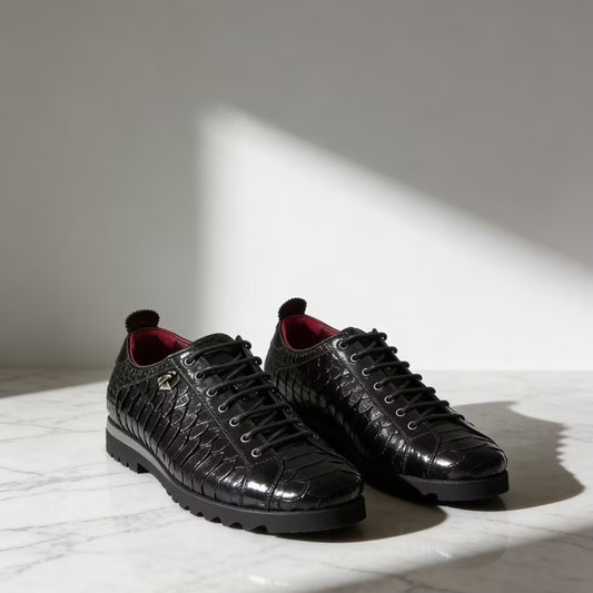 Men's Crocodile-Embossed Ankle Boots With Zip Front