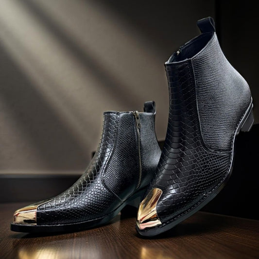 Men's Alligator Point-Toe Metallic Ankle Boots