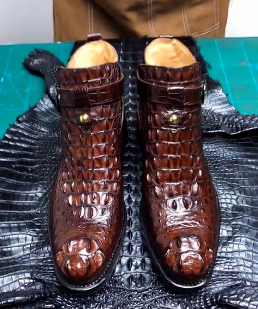 Men's Handmade Crocodile-Print Soft Leather Chelsea Boots