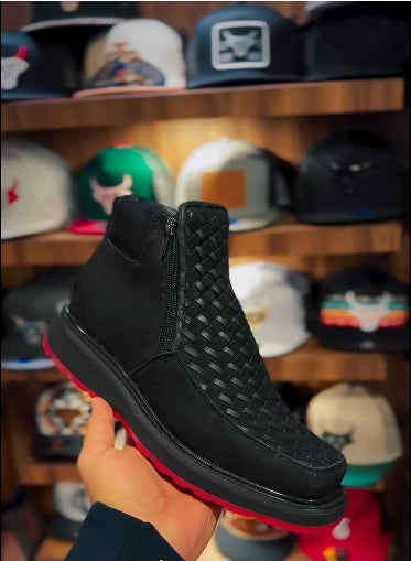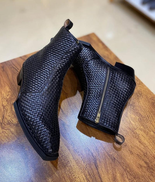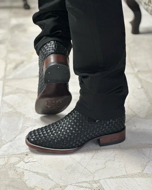 Black Basketweave Leather Boots- Square Toe