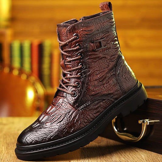 Men's Crocodile-Print Fleece-lined Leather Ankle Boots