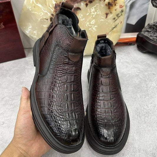 Men's Handmade Crocodile Leather Warm Wool Boots