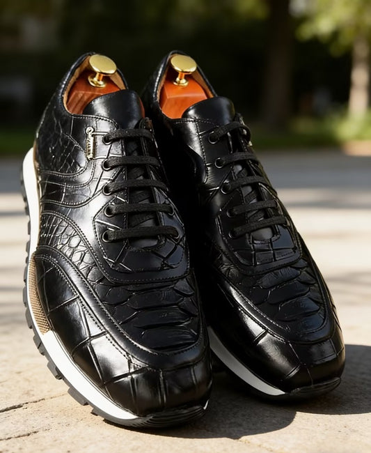 Premium Crocodile-Embossed Leather Sneakers
