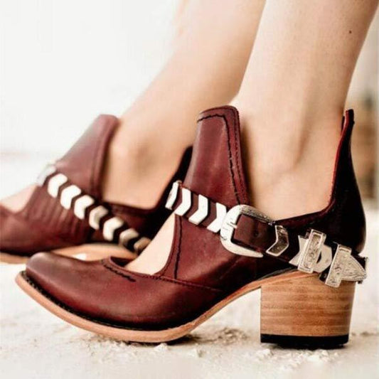 Women's Fashionable Buckle Mid-Heel Single Shoes