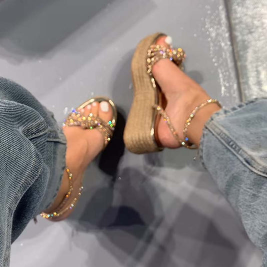 Rhinestone Sparkle Woven Platform Wedge Sandals