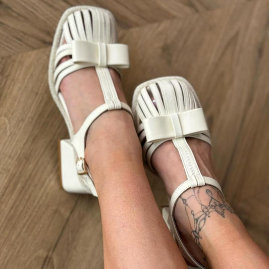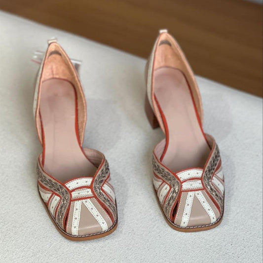 Women's Square Toe Woven Thick Heeled Bow Roman Sandals