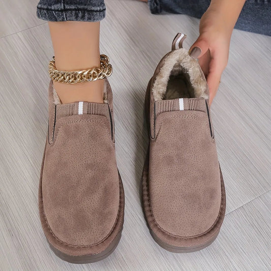 Women's Solid Color Non-slip Soft-soled Round-toe Warm Lined Wool Shoes