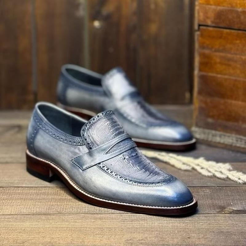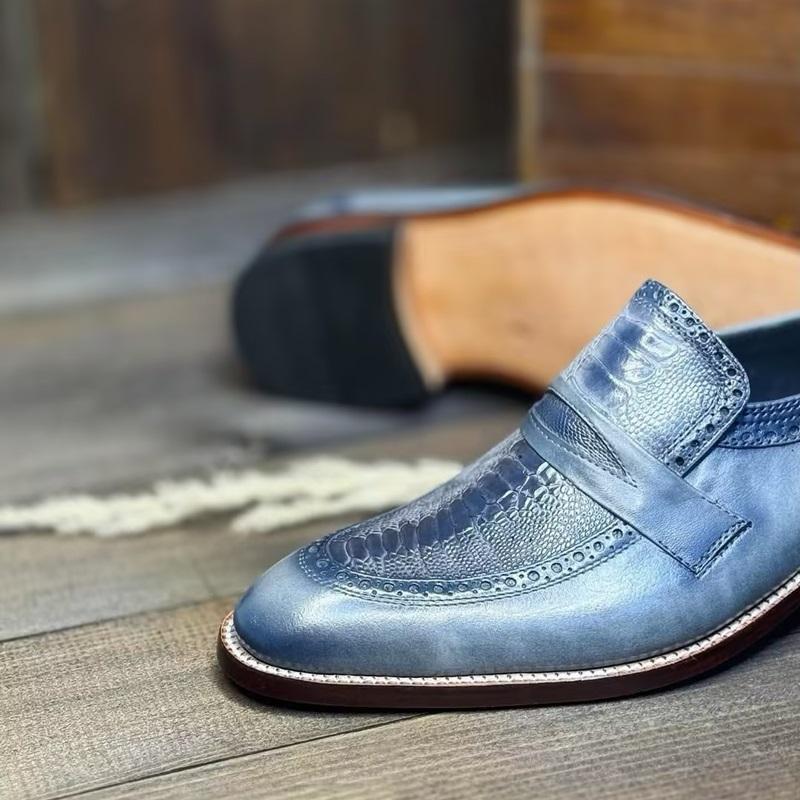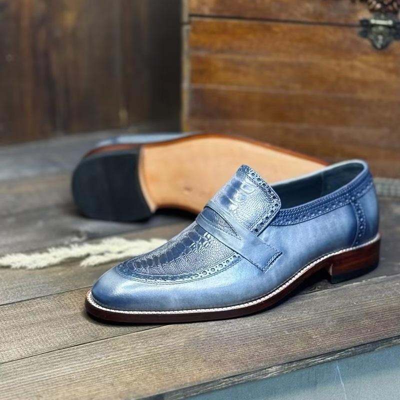 2025 Men's Flame Blue Handmade Leather Shoes