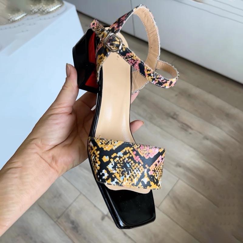 Fashion Printed Thick Heeled Sandals