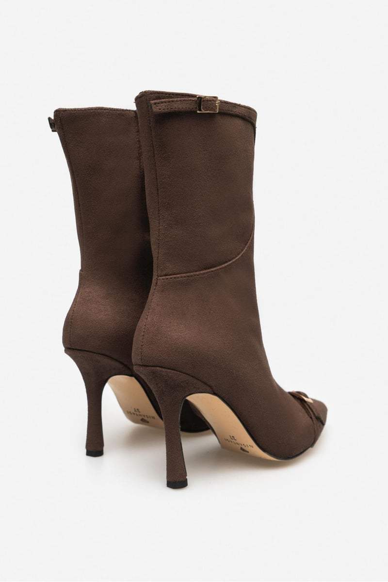 Golden Brown Suede Belt Detail Women's Heel Boots