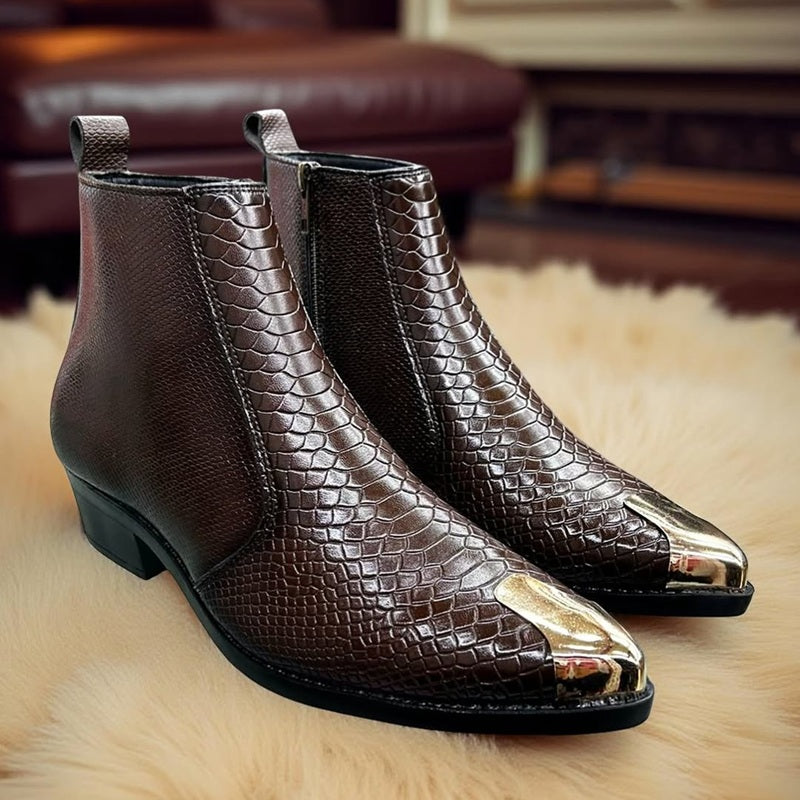 Men's Alligator Point-Toe Metallic Ankle Boots