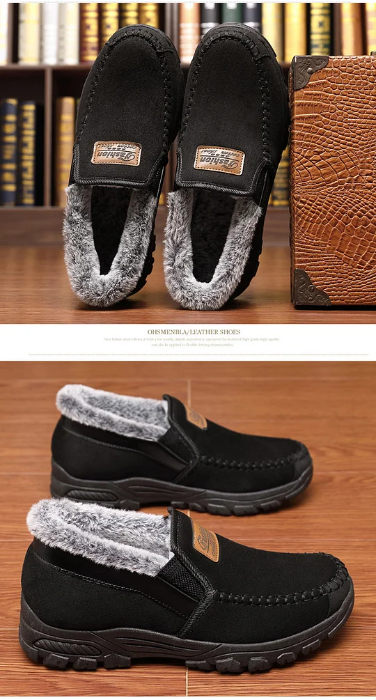 Men's Waterproof Fleece Warm Cowhide Snow Boots