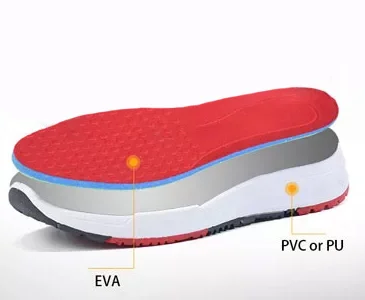 Orthopedic insoles with adjustable ARCH BOOSTER and multiple layers of CUSHION provide soft, pillow-like support that works wonders and increases comfort up to the knees, hips and lower back.