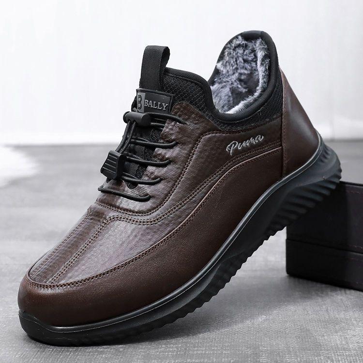 Men's Winter Fleece-lined Thickened Warm Non-slip Soft-soled Cotton Shoes