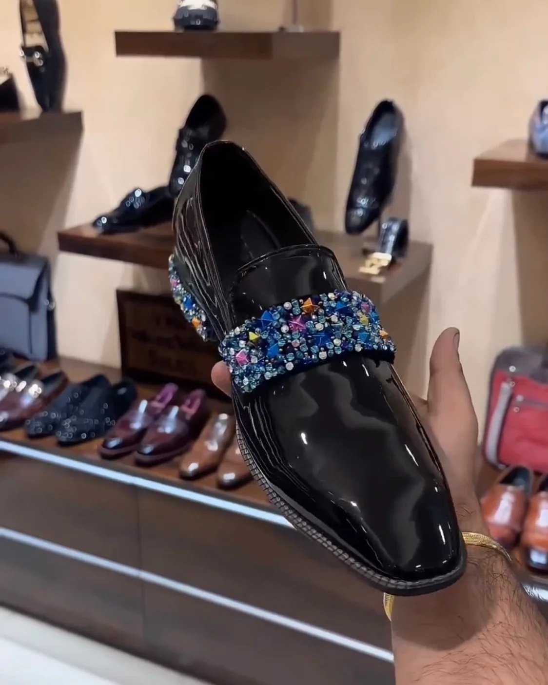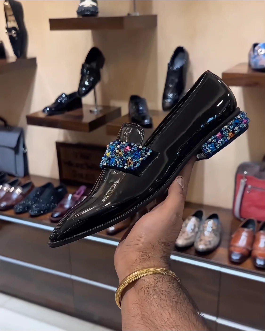 Patent Red Bottom Studded Moccasins