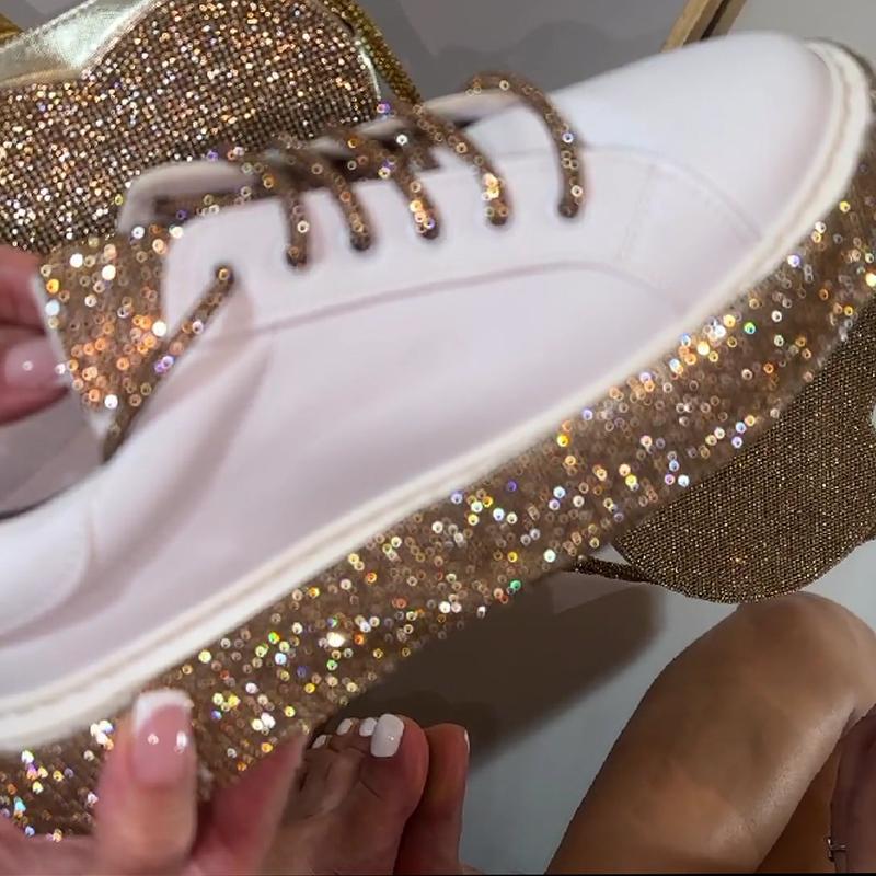 Rhinestone Lace Up Casual Flat Women's Board Shoes