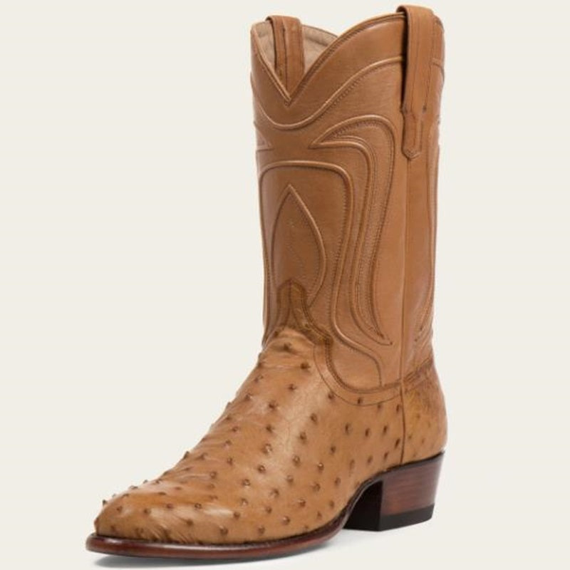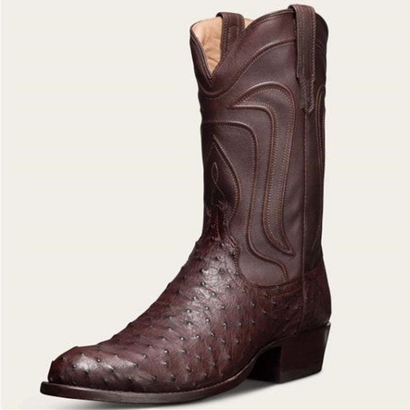 Roman Cozy Mid-Heel Ostrich Knights Boots