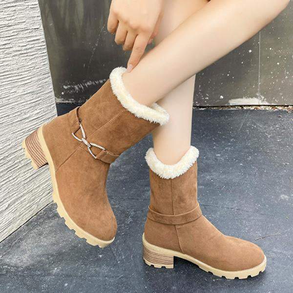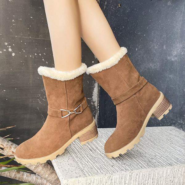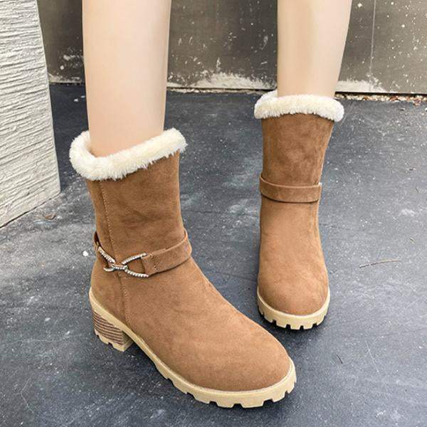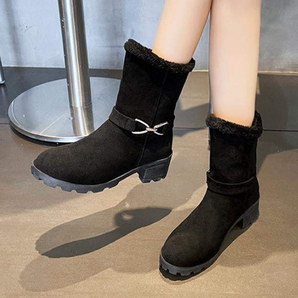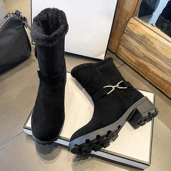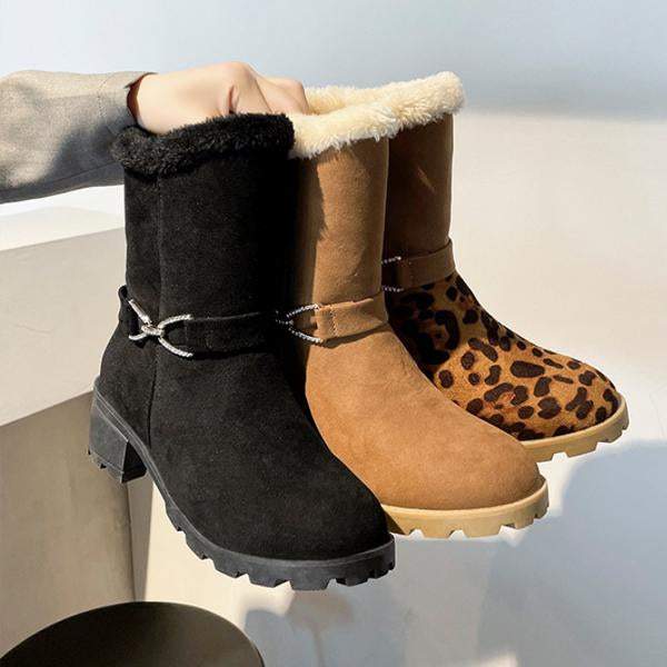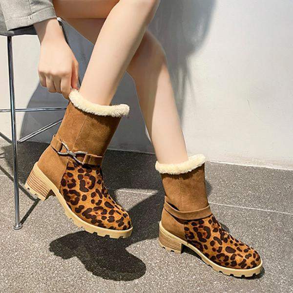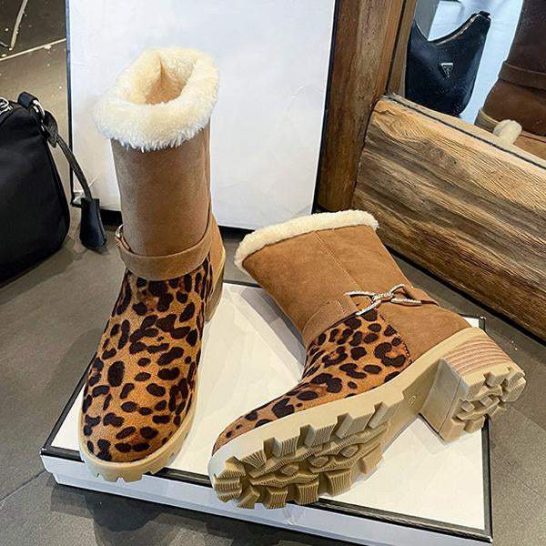 Women's Casual Leopard Print Buckle Block Heel Snow Boots