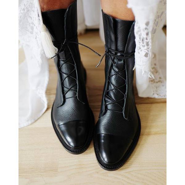 Women'S Paneled Lace-Up Short Martin Boots Biker Boots